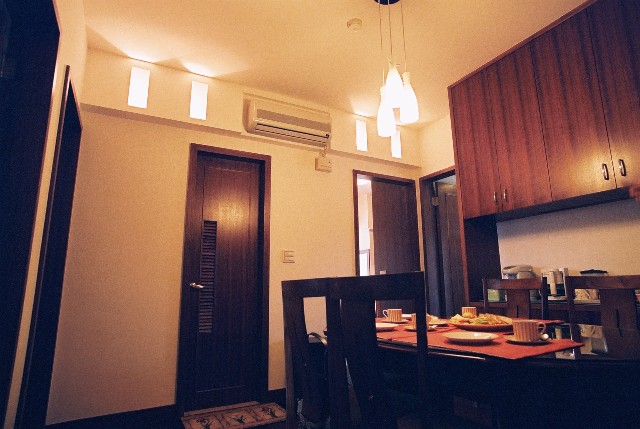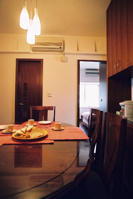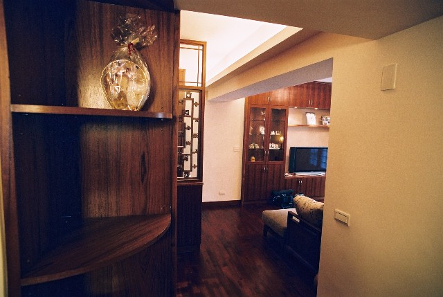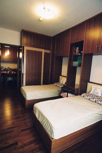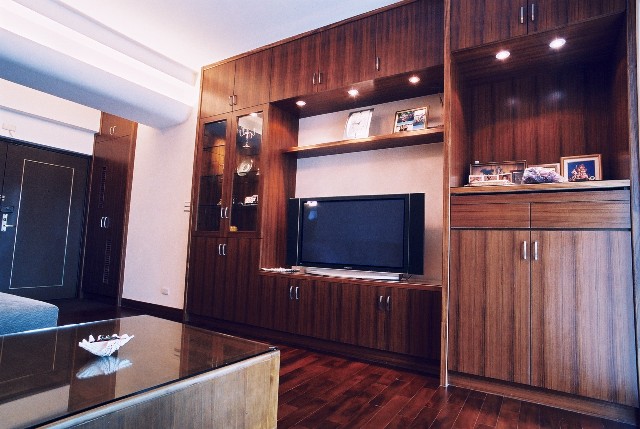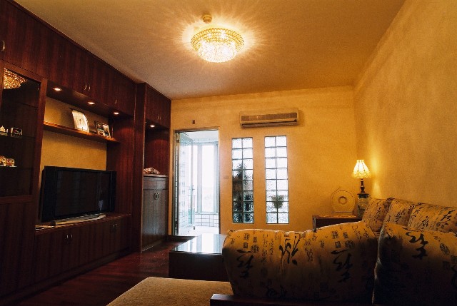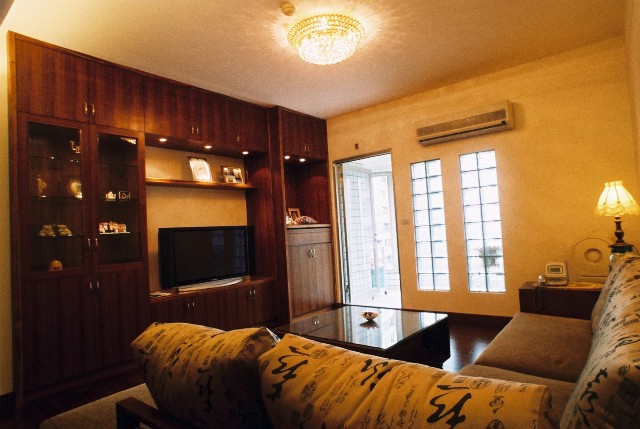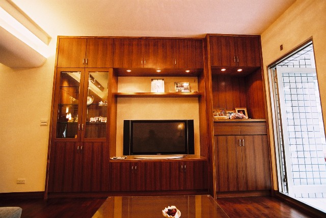 木作電視櫃與木地板搭配實木沙發、水晶燈,客廳簡潔大方不失貴氣,牆面燈光照明營造餐廳溫馨感,白色廚具加大空間, 媽媽房、兒童房空間有限,以木作量身訂做特別尺寸櫥櫃、床頭櫃、書桌、梳妝台等等增加機能性。