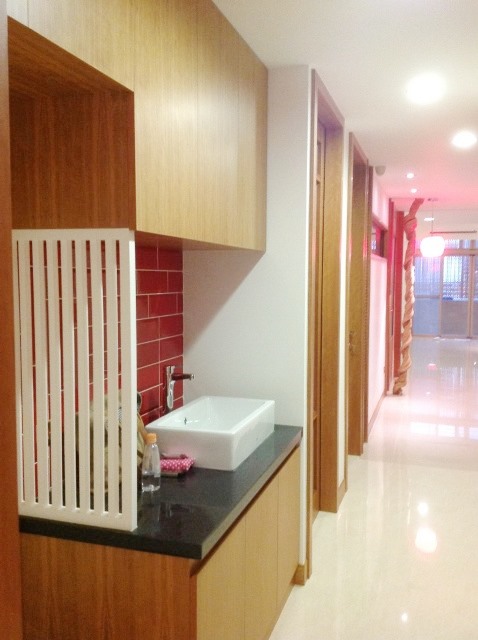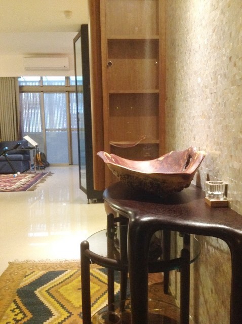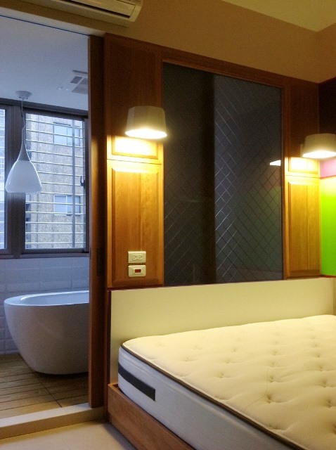 悠閒自然的氛圍出現在不特定的空間裡,很多物件沒有制式的組合也不拘泥在傳統觀念的形態內,例如燈具的吊掛及磁磚的拼貼或家具的擺設等等...處處顯現主人隨意自然但又認真的感性生活,聰明且真摯爛漫的主人母親對拼布藝術的研究及佈置的天份,反應在空間的每個角落;加上對原木家具的鍾愛與老件古董的蒐集,空間時而趣味,時而細膩精緻,時而輕鬆自然,時而古色古香。多元呈現,居住想法很獨特不攀風附雅。