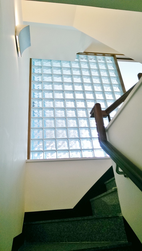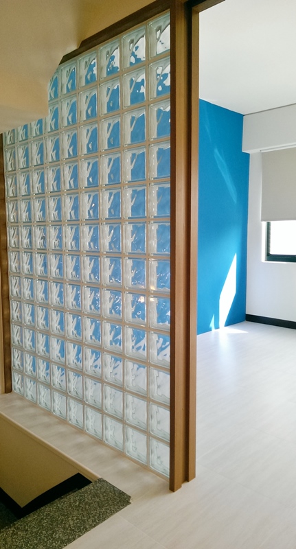 絲質壁布配合了浪紋夾紗玻璃 讓原本封閉的更衣室有了另一種光影,
