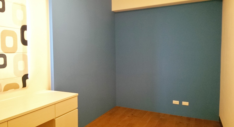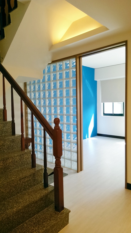 牆面選擇單一面主牆使用藍色塗料結合大面景觀窗 自然而純樸。